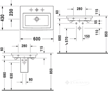 Німеччина, гарантія від виробника - 5 років, форма: прямокутна, установка меблевий, розмір 60x43x11,5 см, висота 11,5 см
