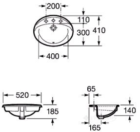 Іспанія, гарантія від виробника - 10 років, форма: овальна, установка на стільницю, матеріал кераміка, колір білий, розмір 52x41x18,5 см, висота 185 мм