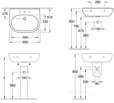Перейти до докладного описуЗверніть увагу! Умивальник окремо комплектується напівп'єдесталом або п'єдесталом.