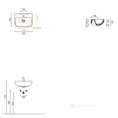 Італія, гарантія від виробника - 2 роки; форма: прямокутна, установка підвісна, матеріал кераміка, колір білий, розмір 45x34 см, висота 16 см, поверхня: глянцева