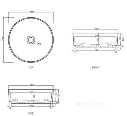 Італія форма: кругла, установка на стільницю, матеріал кераміка, колір білий, розмір 40х40 см, висота 12,5 см