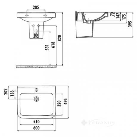 Туреччина, гарантія від виробника - 5 років, форма: прямокутна, установка підвісна, матеріал кераміка, колір білий, розмір 49,5x60 см, висота 17,5 см, з отвором для переливу