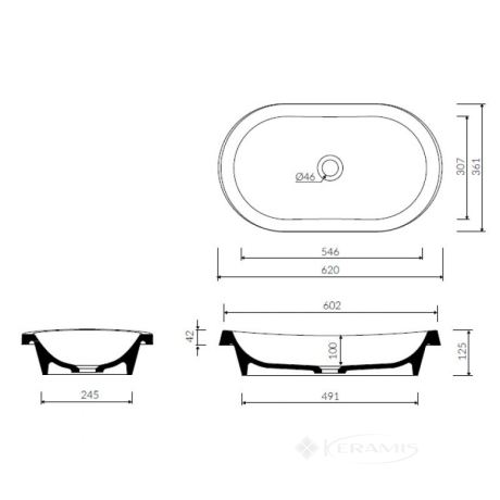 Польща, гарантія від виробника - 10 років, форма: овальна, установка на стільницю, матеріал штучний камінь, колір білий, розмір 36,1x62 см, висота 12,5 см, технологія mineralicast