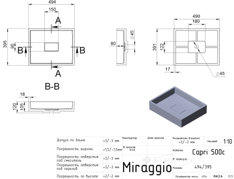 Перейти до докладного описуУмивальник Miraggio Capri 49,4x39,5 білий матовий - виготовлений з кварцового піску з технології MIRASTONE, накладної. Вага умивальника становить 12,5 кг До складу суміші входить тільки кварцовий пісок, смоли та добавки санітарні. Умивальники не піддаються дії барвників, не вигоряють на сонці і при правильному догляді прослужить багато років.