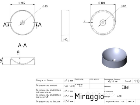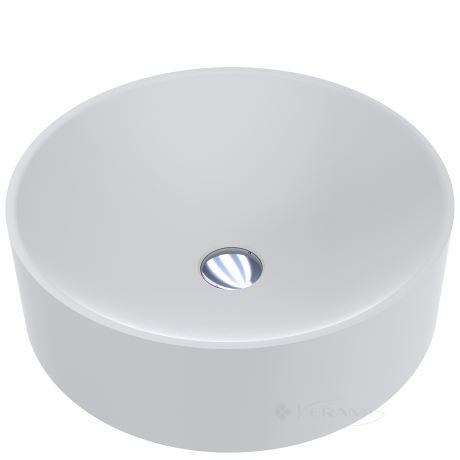 Україна, гарантія від виробника - 10 років, форма: кругла, установка на стільницю, матеріал литий мармур, колір білий, розмір 45x45 см, висота 14 см