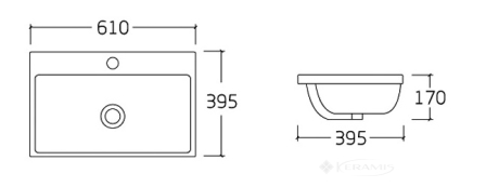 Іспанія, гарантія від виробника - 5 років, форма: прямокутна, установка на стільницю, матеріал кераміка, колір білий, розмір 61x39,5x17 см, висота 17 см, перелив: є