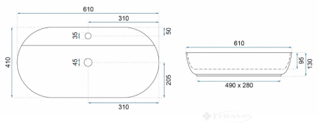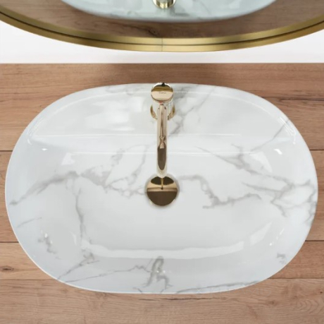 Польща, гарантія від виробника - 2 роки, форма: овальна, установка на стільницю, матеріал кераміка, колір marmo shiny, розмір 61x41 см, висота 13 см