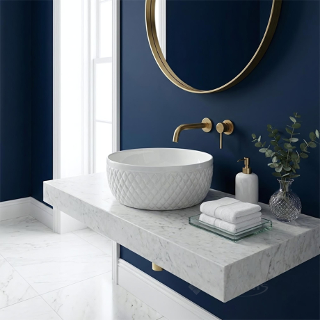 Накладний монтаж – раковина призначена для встановлення на стільницю або тумбу, стаючи виразним центральним елементом зони вмивання.