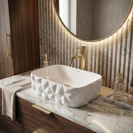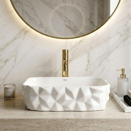 Унікальна зовнішня структура – ??геометрична, скульптурна поверхня надає раковині неповторного вигляду, який ідеально поєднується з сучасними інтер'єрами, стаючи їх головним. кераміка - міцний і стійкий до подряпин матеріал з блискучою обробкою гарантує бездоганну білизну і виняткову легкість у догляді на довгі роки. характер моделі Zamia робить її ідеальним рішенням як для сучасних будинків, так і для комерційних просторів, таких як готелі, SPA-салони або інтер'єри модних ресторанів. тих, хто цінує сміливі рішення та вишукану естетику у кожній деталі. Бездоганне виконання та увага до якості кераміки REA роблять цей продукт не лише красивим, а й вражаючим. Вибираючи цю модель, ви інвестуєте в комфорт та унікальний стиль, який надасть вашій ванній кімнаті розкішний та сучасний характер.
