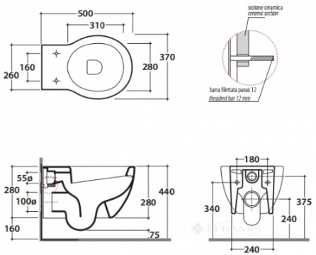 Італія, гарантія від виробника - 1 рік, горизонтальний злив, колір унітазу: білий, форма унітазу: овальні, сидіння: термопласт повільно падаюче