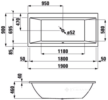 Швейцарія, гарантія від виробника - 5 років, матеріал: акрил, форма: прямокутні, довжина: 190 см, ширина: 90 см, товщина акрилу: 5 мм, установка: пристінна