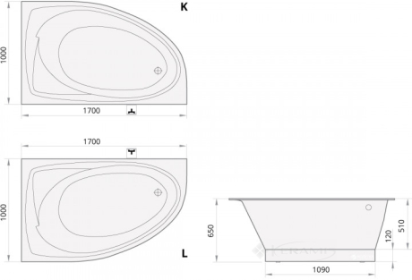 Латвія, гарантія від виробника - 2 роки, колір: білий, матеріал: литий камінь, форма: асиметричні, довжина: 170 см, ширина: 100 см, установка: пристінна