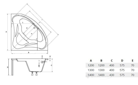 Польща, гарантія від виробника - 10 років, колір: білий матеріал: акрил, форма: кутові, довжина: 140 см, ширина: 140 см, товщина акрилу: 4 мм, установка: пристінна