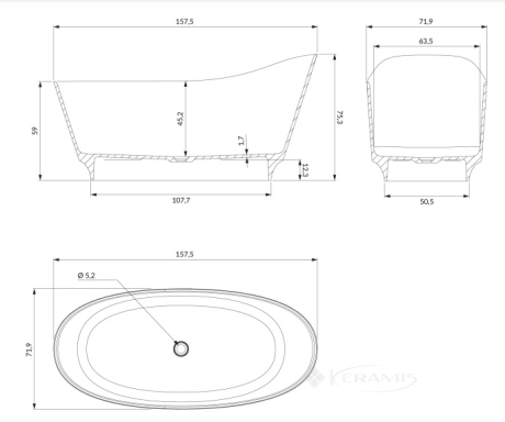 Польща, Гарантія від произв. - 5 років, Колір: Білий, Матеріал: литий камінь, форма: овальні, Довжина: 158 см, ширина: 72 см, установка: окремостояча