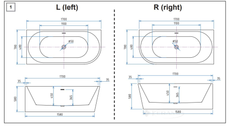 Відгуки про товар Ванна акрилова Domospa by Ravak Freestyle Corner R 170x80, окремостояча углова, біла (RKUA600012)1 відгук